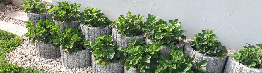 8. Ocelové obruby ohraničují záhon s jahodníky a mátou. Obrubník vytváří rovnou a čistou hranu a zabraňuje prorůstání trávy do záhonu.